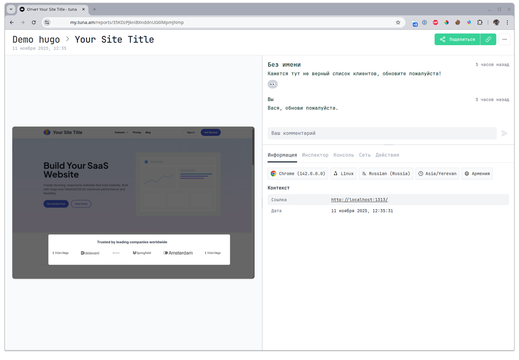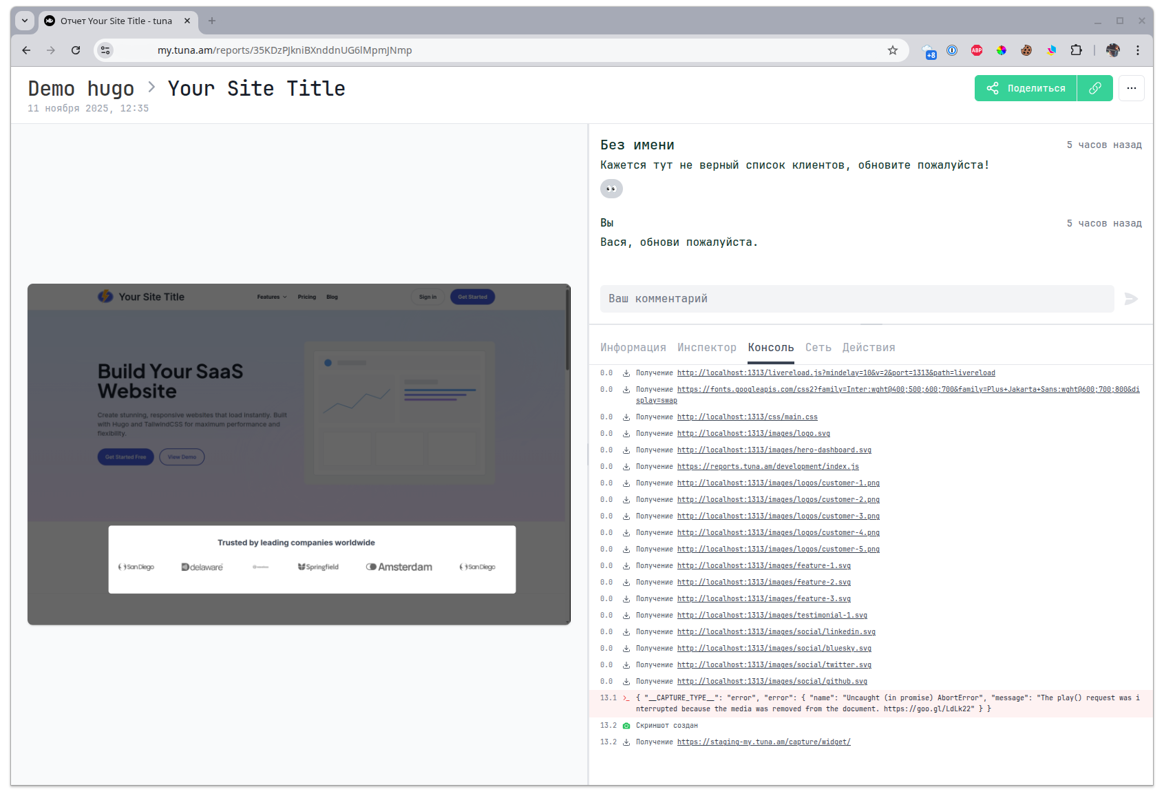 ОтчётыСодержание этой страницыОтчётыПерейти в личный кабинет Функционал для сбора ошибок и создания избыточных отчётов на вашем сайте.